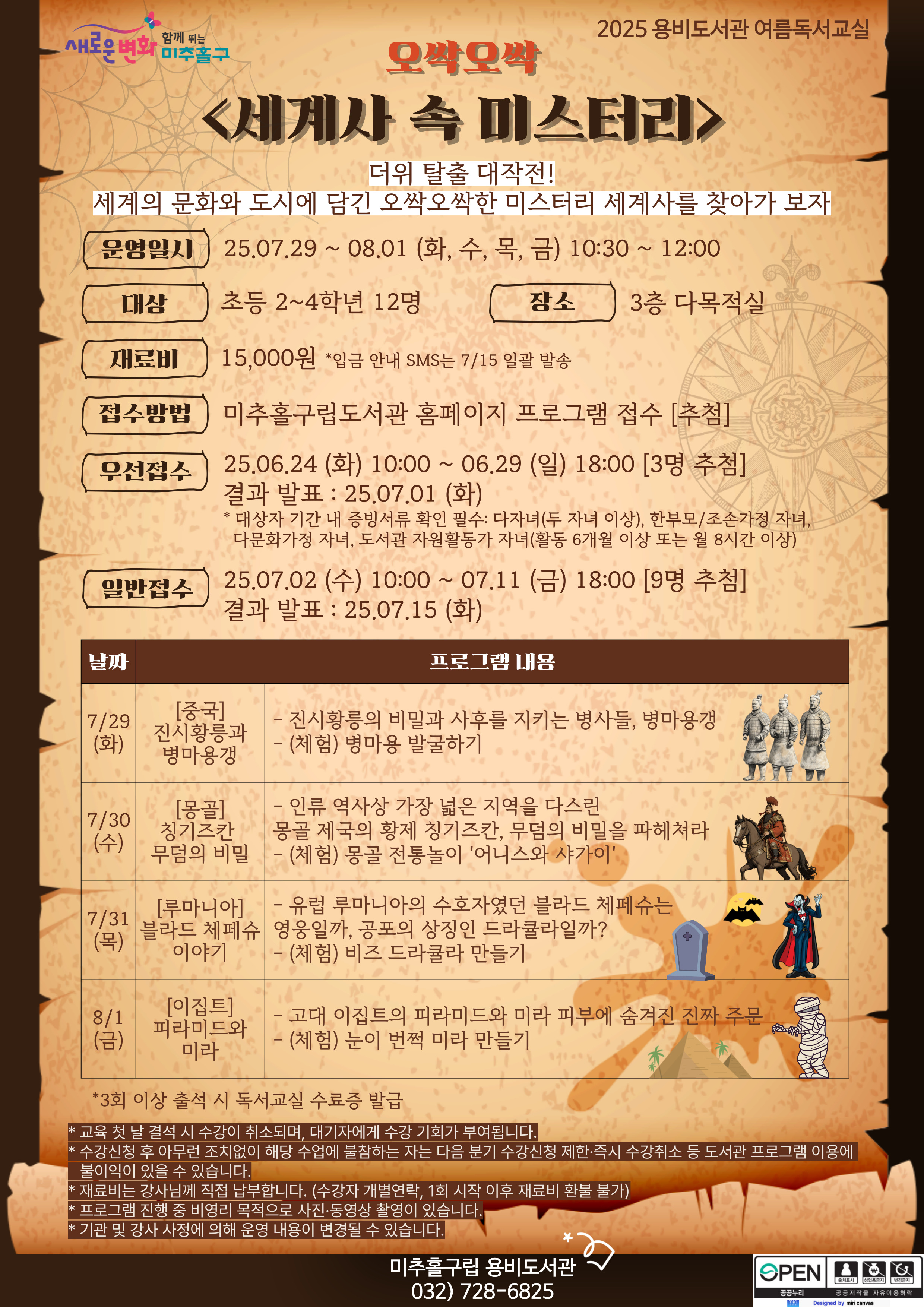 - 결과발표: 2025. 7. 15. (화) 미추홀구립도서관 홈페이지 게시