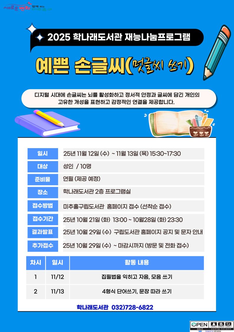 [안내] 2025 재능나눔프로그램 <멋글씨 쓰기> (선착순) |