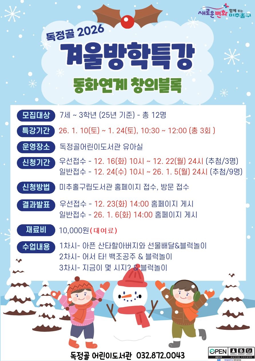 * 결과발표: 2025. 12. 23.(화) 14:00 미추홀구립도서관 홈페이지 게시