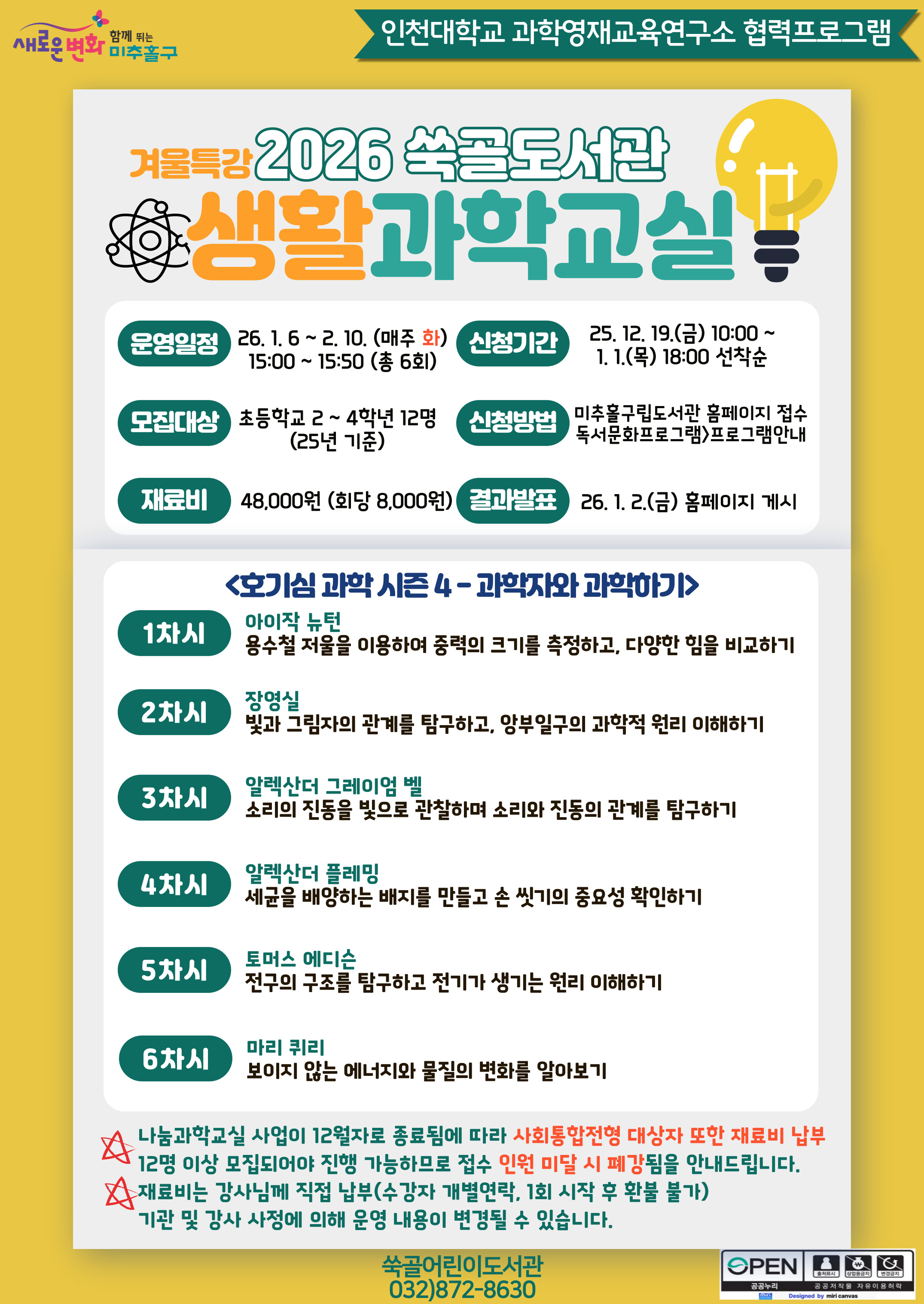 - 결과발표: 2026. 1. 2. (금) 미추홀구립도서관 홈페이지 게시
