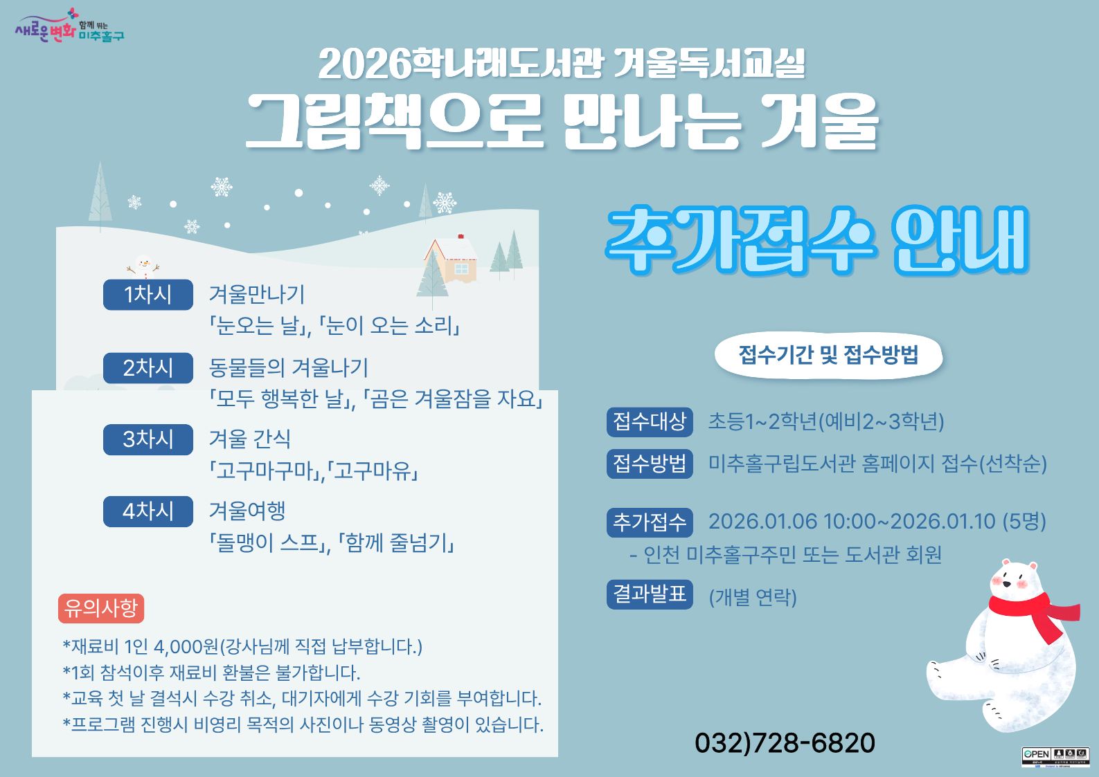 2026 겨울독서교실 <그림책으로 만나는 겨울 > (추가접수) |